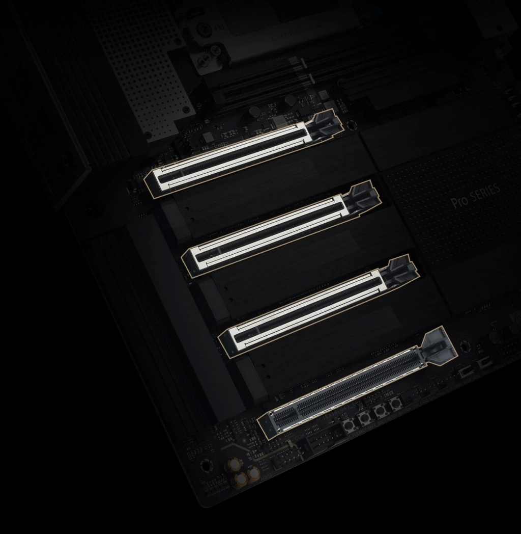 Pro WS TRX50-SAGE WIFI A dört adet dahili M.2 yuvasına sahip. Büyük boyutlu dosyalarla çalışan kullanıcılar, RAID kullanarak birden fazla NVMe cihazını bir araya getirip yüksek G/Ç bant genişliği ve hızlı veri okuma ve yazma işlemleri gerçekleştirebilirler. Bu yapılandırma, yüksek G/Ç bant genişliği için birden fazla NVMe cihaz arasında RAID yapılandırması desteği ve içerik düzenleme istasyonlarında kusursuz yeniden oynatma sayesinde devasa video dosyalarıyla çalışan üreticiler için idealdir.
