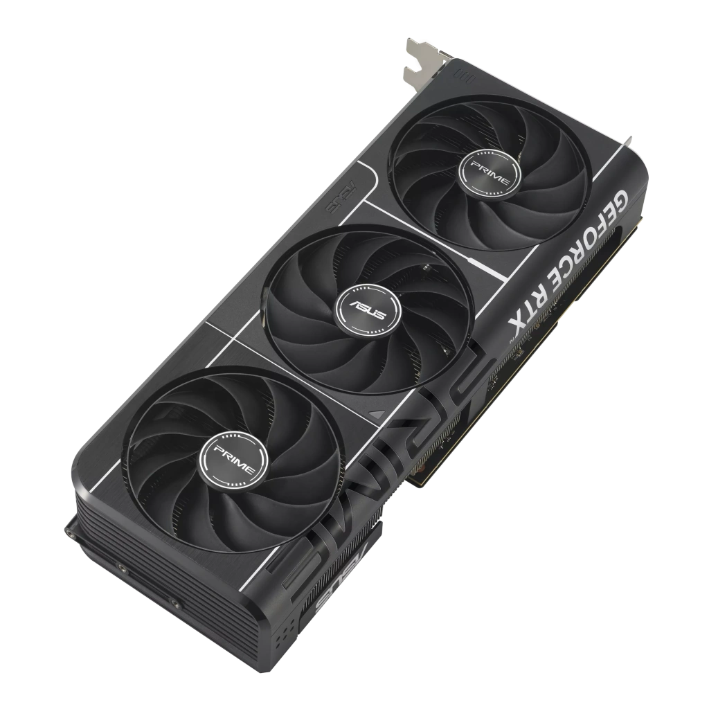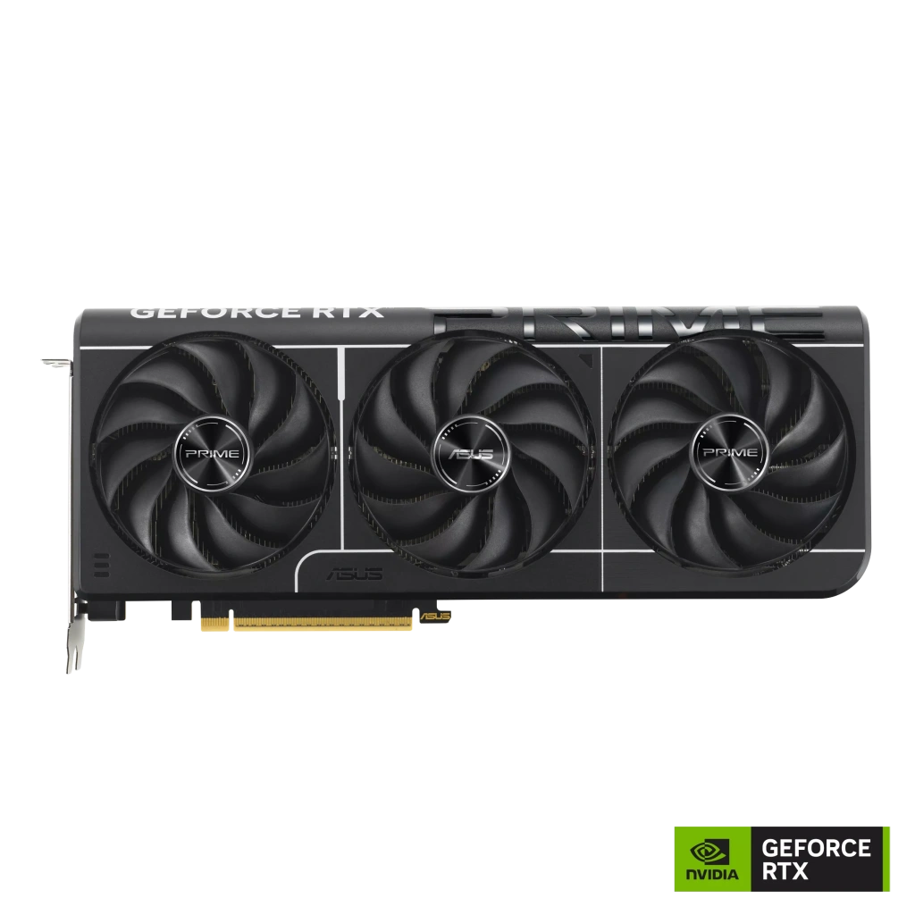 Prime GeForce RTX 5080, üç adet eksen teknolojili fanın ekran kartının yan havalandırmasından en iyi şekilde faydalanması ve en uygun termal performans sunması için özenle planlanmış koruma, soğutma bloğu ve ısı borusu düzeniyle 2,5 yuva yer kaplayan tasarıma sahip.