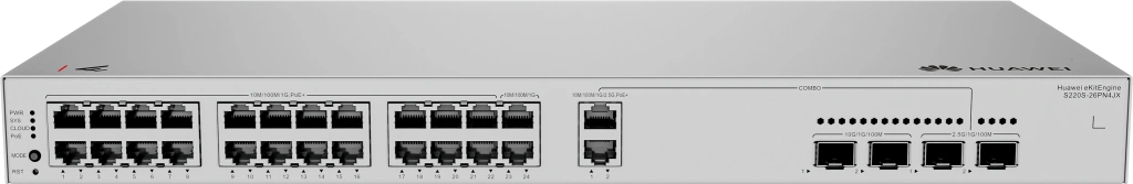 HUAWEI 24port 400W PoE eKIT S220S-26PN4JX GIGABIT 2-SFP 2.5GbE-2-SFP 10GbE Yönetilebilir Switch Rack