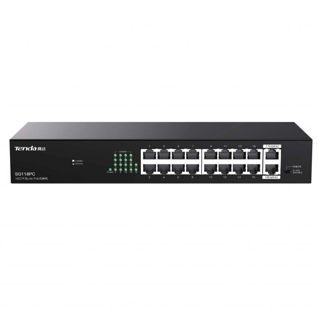 TENDA SG118PC 18 PORT 10/100/1000 16 PORT POE 2 PORT UPLINK 167W YONETILEMEZ DESKTOP SWITCH