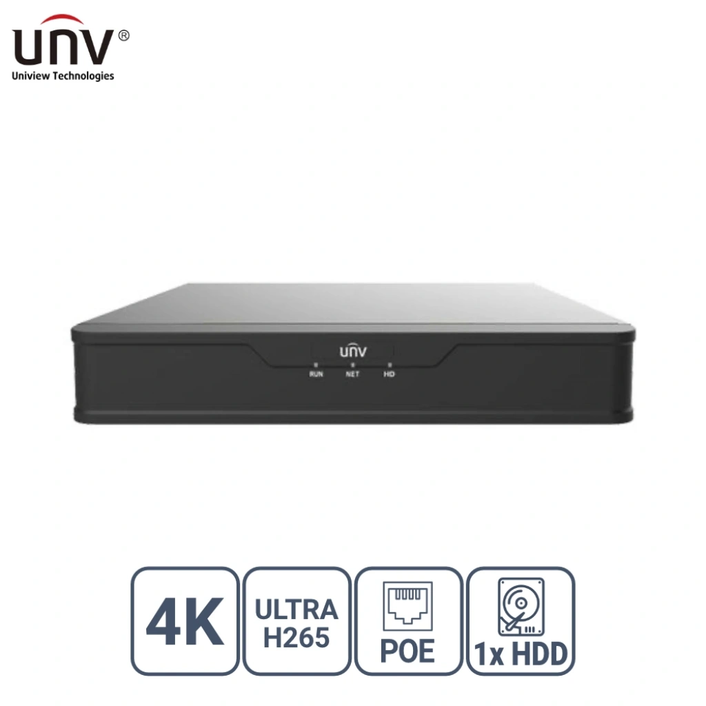 UNIVIEW NVR301-08S3-P8 8 KANAL POE VGA/HDMI H265+ NVR KAYIT CİHAZI